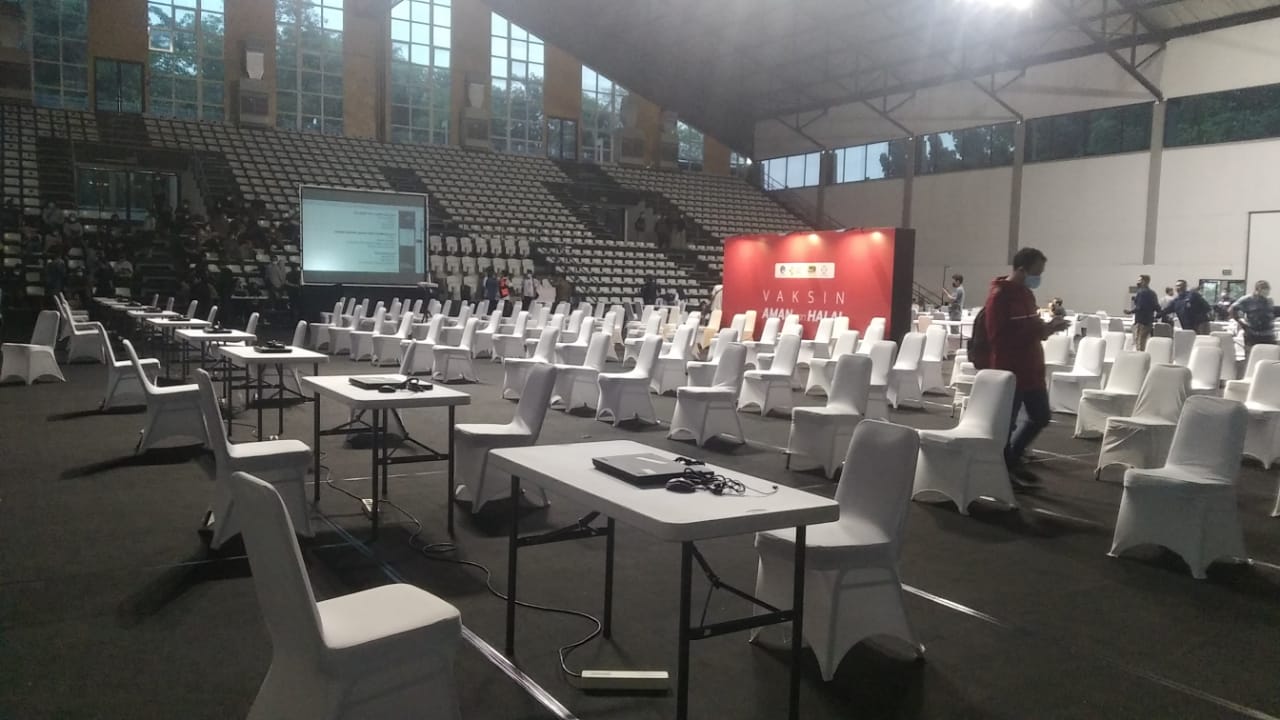 Hari ini sistem mesin antrian MSKreasi untuk suntik vaksin covid 19 untuk awak media yang berlokasi di Hall A Basket Gelora Bung Karno (GBK) Jakarta dari tanggal 25 – 27 februari 2021. Per hari ini yang di vaksin sekitar 1800an orang dari total 5500an orang